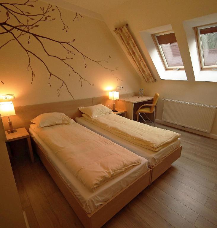 Pokoje są zlokalizowane w kameralnym, 2 kondygnacyjnym, 12 pokojowym, budynku hotelowym. Znajdują się na pierwszym piętrze – (wejście po schodach) w miejscu gwarantującym ciszę i spokój.
